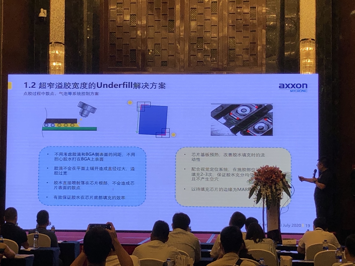 其中一個與底填膠相關的 超窄益膠的解決方案 以及點膠過程中散點 氣泡等系統控制方案 .