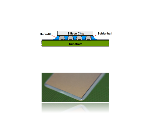 Underfill工藝是一種集成電路封裝工藝,用于在倒裝芯片邊緣點涂環氧樹脂膠水,通過“毛細管效應”完成底部填充過程,并在加熱情況下使膠水固化。該工藝在緩解芯片封裝中不同材料之間熱膨脹系數不匹配帶來的應力集中問題,提高器件封裝可靠性方面起著重要作用。